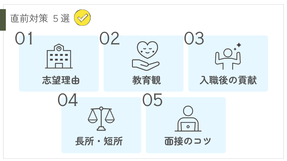 今回は、教員採用試験の直前にこれだけはやっておくべき5つのこと、をご紹介してきました。