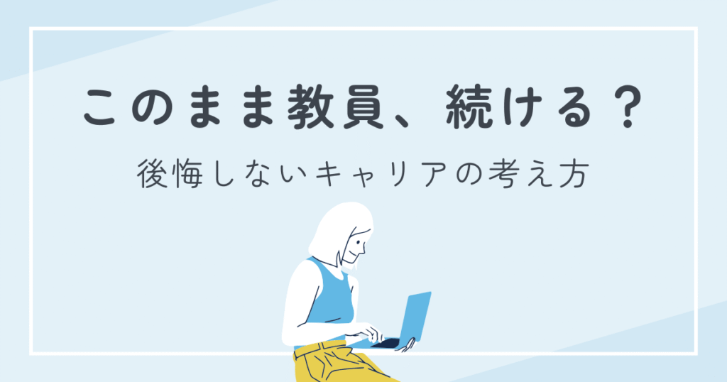 年度末が近づいてくるといつも思う‥「このまま教員として続ける?それとも転職する?」という永遠の悩み。教員として働くのも楽しいけど、でもこの環境ではもう続けられない‥どうしたらいいの?と悩んでいる先生方へ、私立学校の人事担当経験を基に、後悔しないキャリアの考え方をご紹介しています! -
