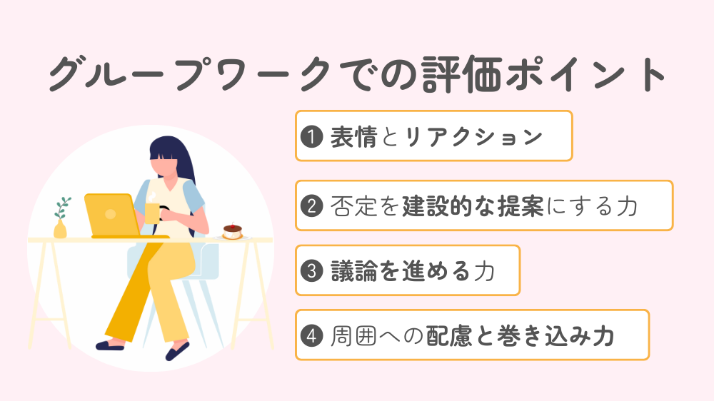 グループワークで議論を進めていく中で、自分とは違う意見が出たときこそ、最大の評価チャンスです。