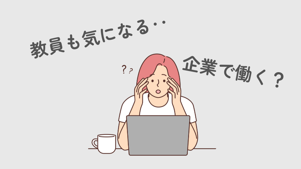 「一般企業で普通に会社員していた方がいいのかなぁ?」「でもやっぱり教員として働くことも憧れるなぁ‥」と自分の働き方を決め切れずに悩んでしまう方もいらっしゃるかもしれません。